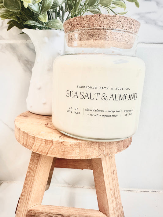 Sea Salt & Almond - Large Mason Jar Candle 13oz Mason Jar Candles